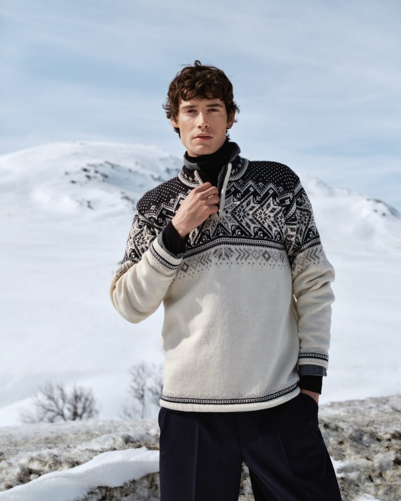 Dale of Norway Rund Hals-Bjoroy Ullgenser – Tynn Norsk Ull Lys Bla Offwhite