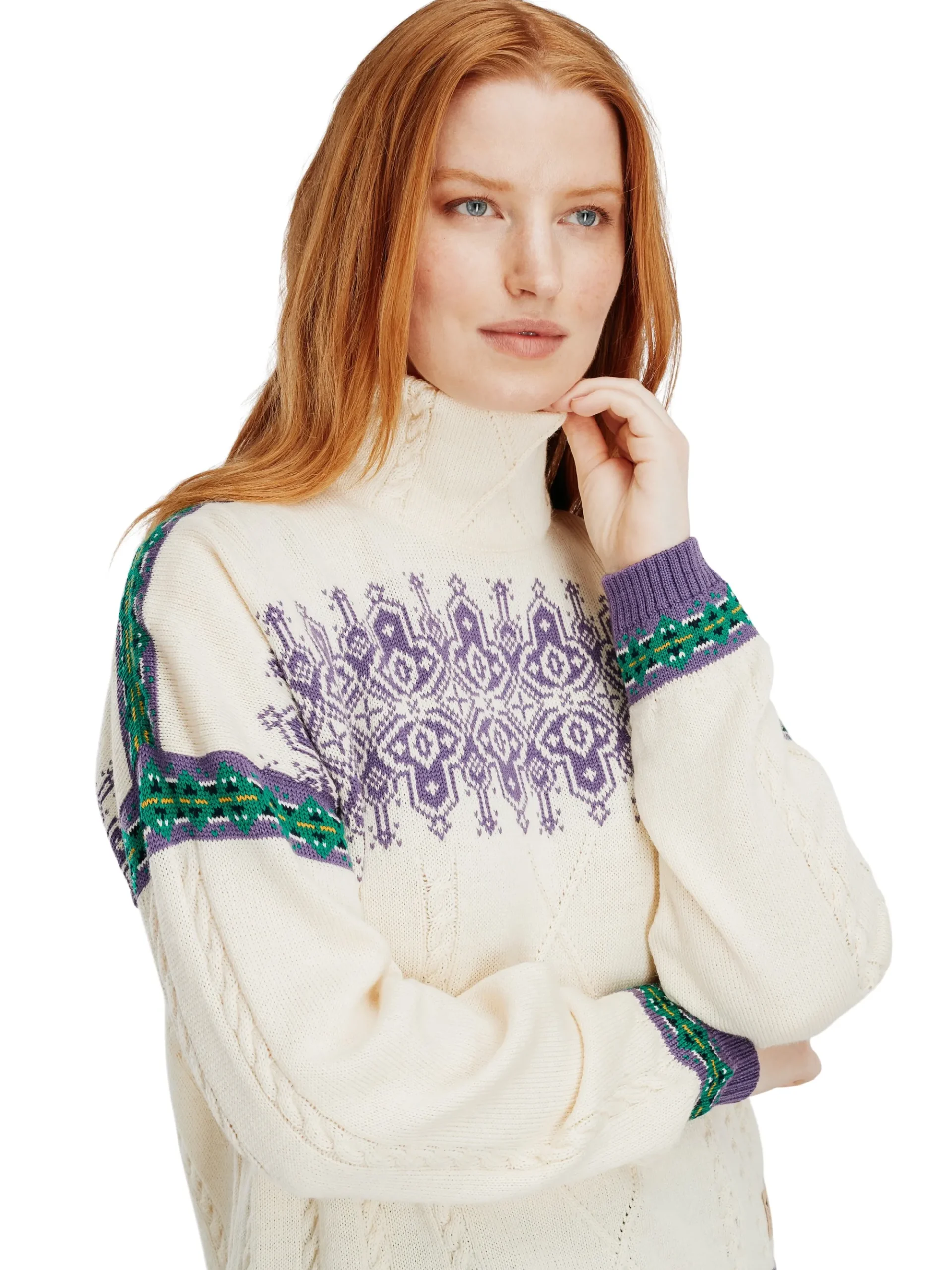En Komfortabel Ullgenser Med Høy Hals, Kort Liv Og Romslig Passform. Senkede Skuldre Og Hoye, Ribbestrikkede Mansjetter Pa Ermene Tilforer Volum Og Personlighet. Genseren Er Laget Av 100% Ull Med Lang Holdbarhet Og Har En Kombinasjon Av Kabelstrikk Og Strikkemonstre. Halsen Er Foret Med Myk Merino-Ull For Ekstra Komfort.