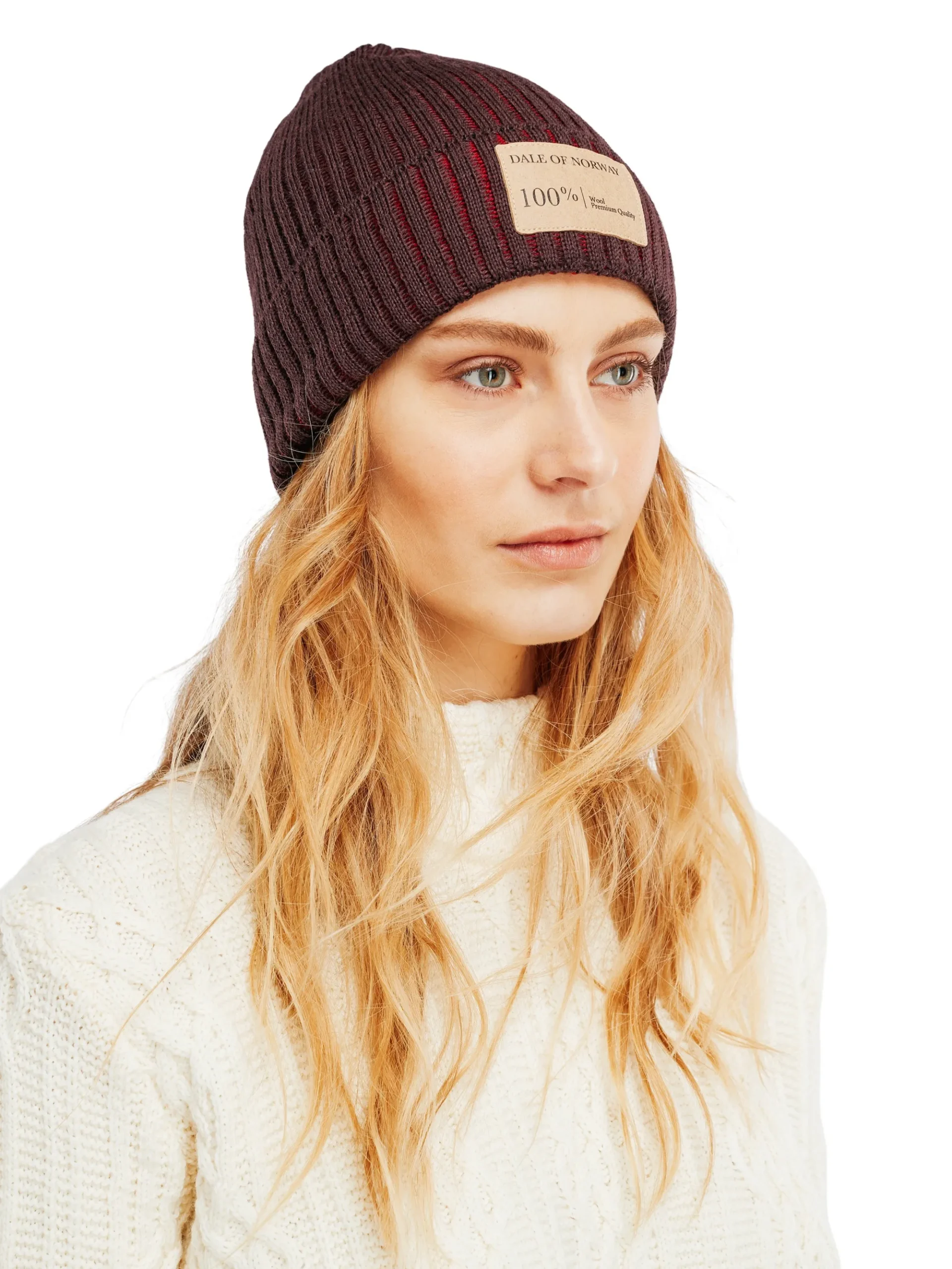 Ribbestrikket Lue Med Kontrastfarge I Bunn Og Dobbel Konstruksjon: Luen Er Strikket Med 100% Fin Norsk Ull Pa Utsiden Og 100% Skin Soft Merino-Ull Pa Innsiden.