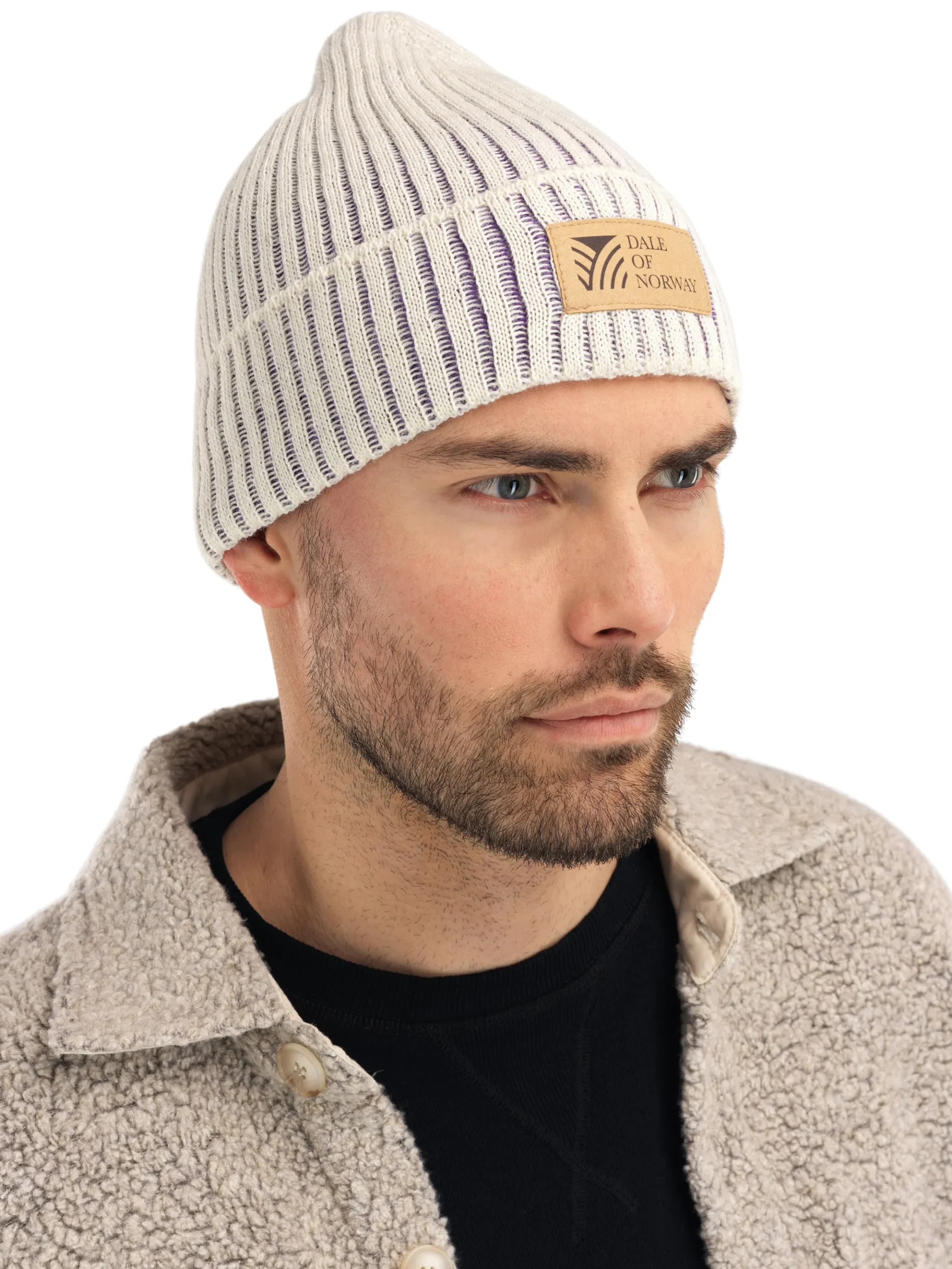 Ribbestrikket Lue Med Kontrastfarge I Bunn Og Dobbel Konstruksjon: Luen Er Strikket Med 100% Fin Norsk Ull Pa Utsiden Og 100% Skin Soft Merino-Ull Pa Innsiden.