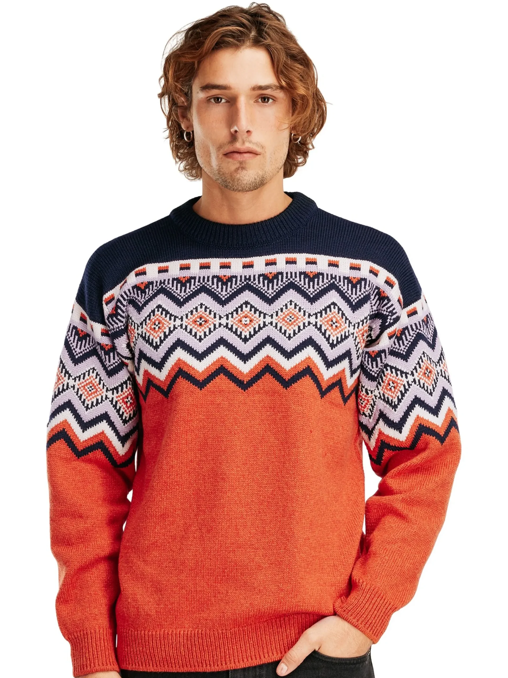 En Supermyk, Monsterdrevet Merinogenser Med Klare Kontraster. Inspirasjonen Er Hentet Fra Klassiske Skigensere Og Det Bearbeidede Monsteret Hentet Fra En Av Vare Bestselgere, Genseren Vegard. Halsen Er En Crew Neck, Men Sitter Tett Nok Til A Varme Godt Pa Kalde Dager. Randaberg Er En Sporty Genser Og Passer Like Godt I Skibakken, Som I Byen.