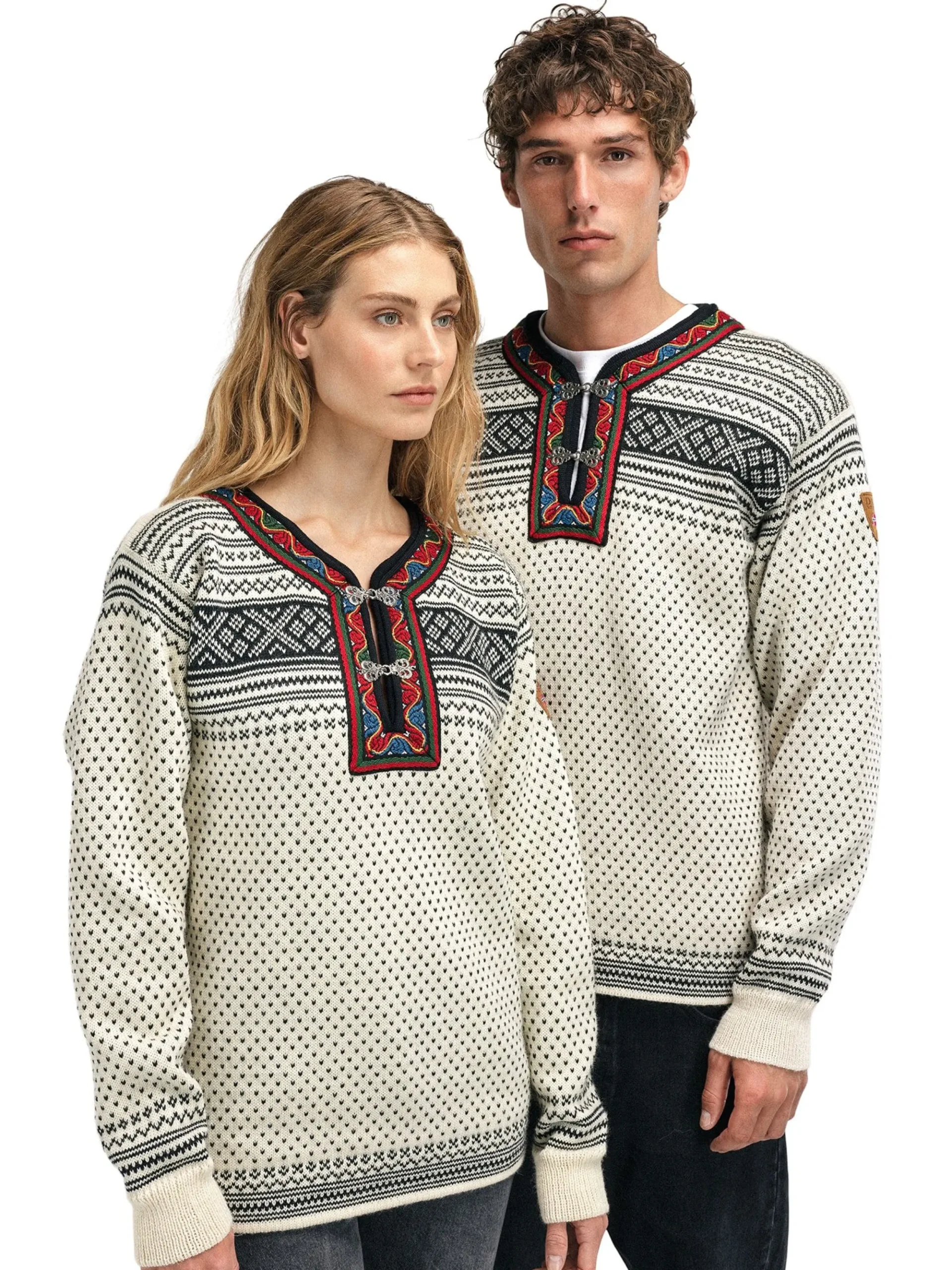 Setesdalsdesignet Er Norges Mest Kjente Monster. Dette Er Den Originale Versjonen Basert Pa Lusekoften, Strikket I 100% Norsk Ull, Med Tinnknapper Og Vevde Band Laget I Norge. Ullgenseren Har Det Velkjente Lusemonsteret Og De Tradisjonelle Korsene, Som Opprinnelig Ble Strikket Inn For A Beskytte Mot Onde Ander.
