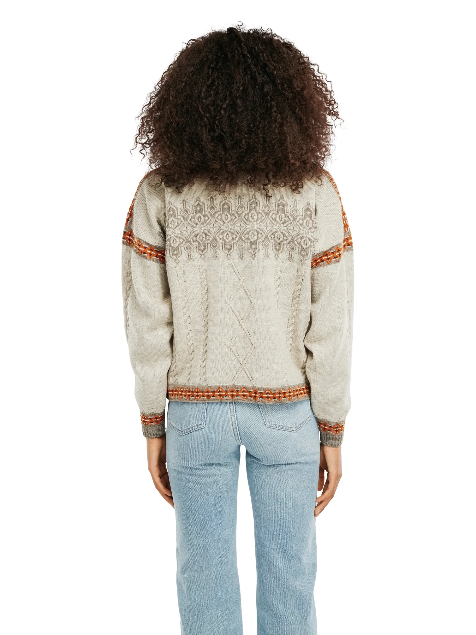 En Komfortabel Ullgenser Med Høy Hals, Kort Liv Og Romslig Passform. Senkede Skuldre Og Hoye, Ribbestrikkede Mansjetter Pa Ermene Tilforer Volum Og Personlighet. Genseren Er Laget Av 100% Ull Med Lang Holdbarhet Og Har En Kombinasjon Av Kabelstrikk Og Strikkemonstre. Halsen Er Foret Med Myk Merino-Ull For Ekstra Komfort.