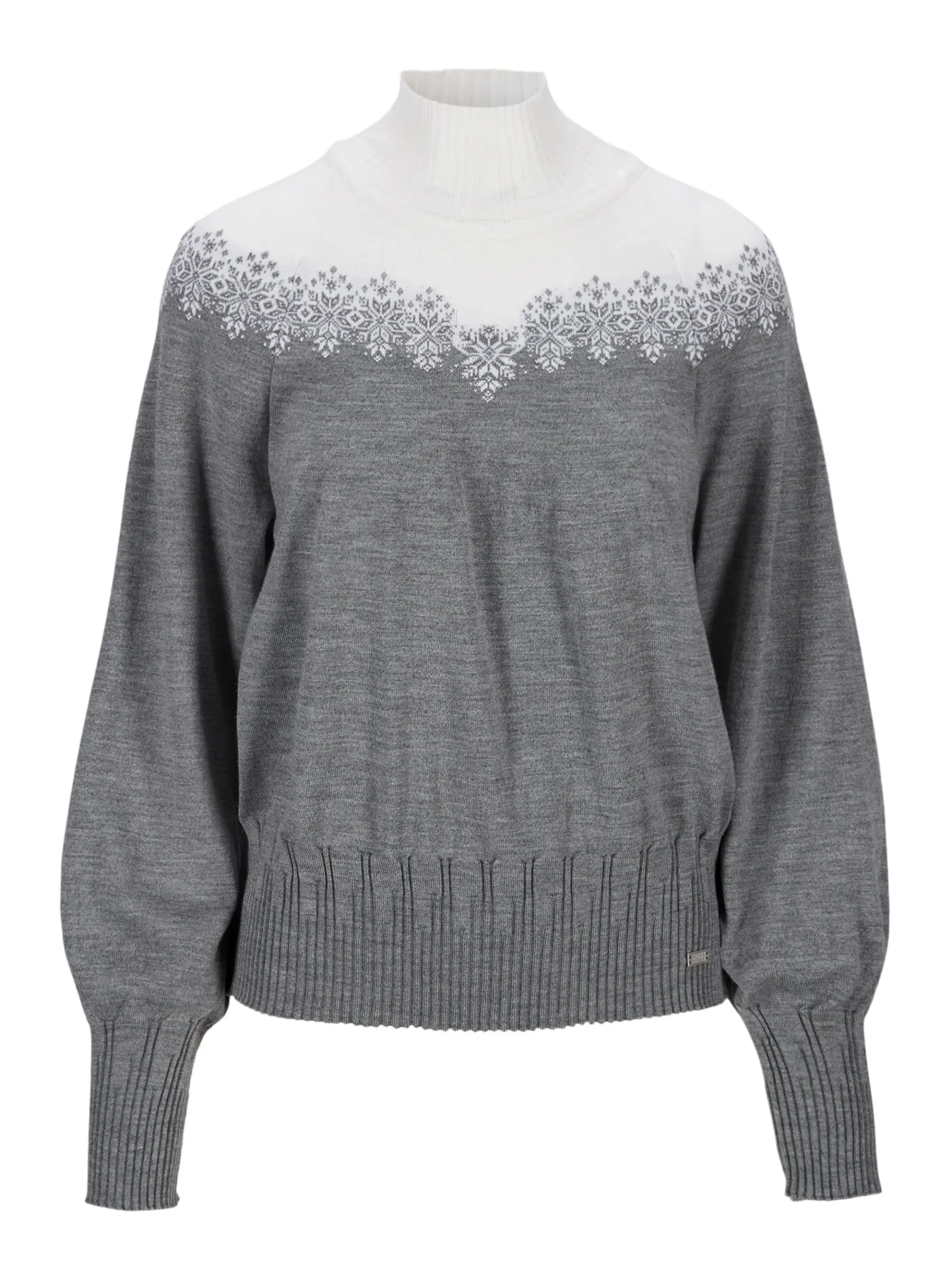 Isfrid Er En Lett Ullgenser Som Ser Ut Som En Rundstrikket Genser, Men Som Har En Konstruksjon Med Raglanermer. Genseren Har En Kokong-Formet Silhuett, Høy Hals, Ermer Med Ekstra Vidde, Og Generos, Asymmetrisk Ribbestrikk I Liv, Pa Mansjetter (Ermer) Og I Hals. Monsteret Med Snokrystaller Hinter Om En Genser Som Trives Like Godt I Skibakken Som I Byen.