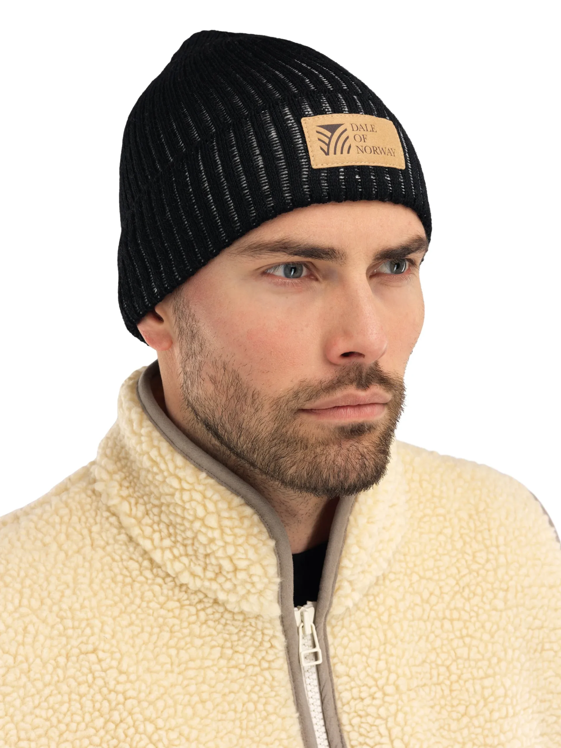 Ribbestrikket Lue Med Kontrastfarge I Bunn Og Dobbel Konstruksjon: Luen Er Strikket Med 100% Fin Norsk Ull Pa Utsiden Og 100% Skin Soft Merino-Ull Pa Innsiden.