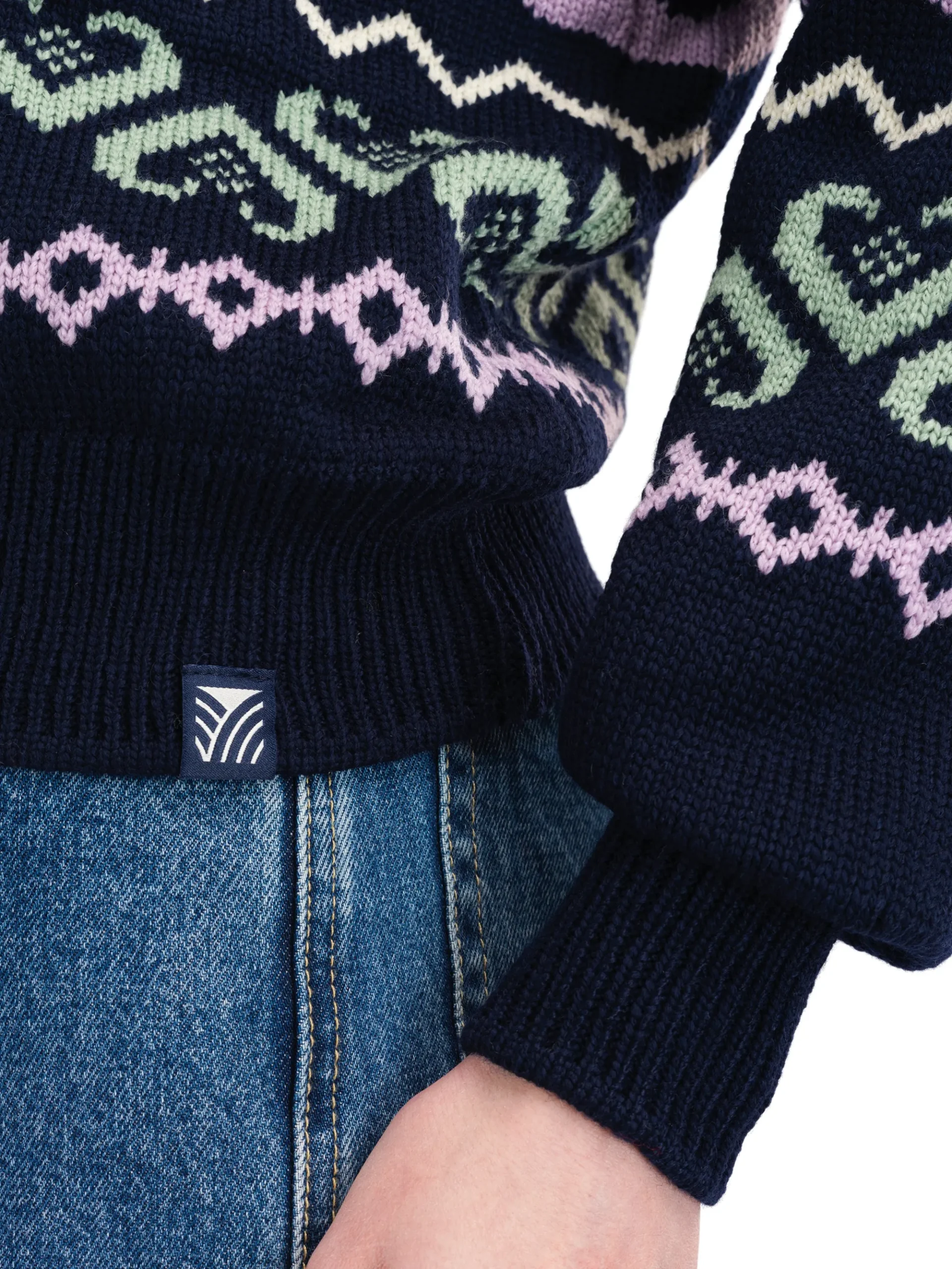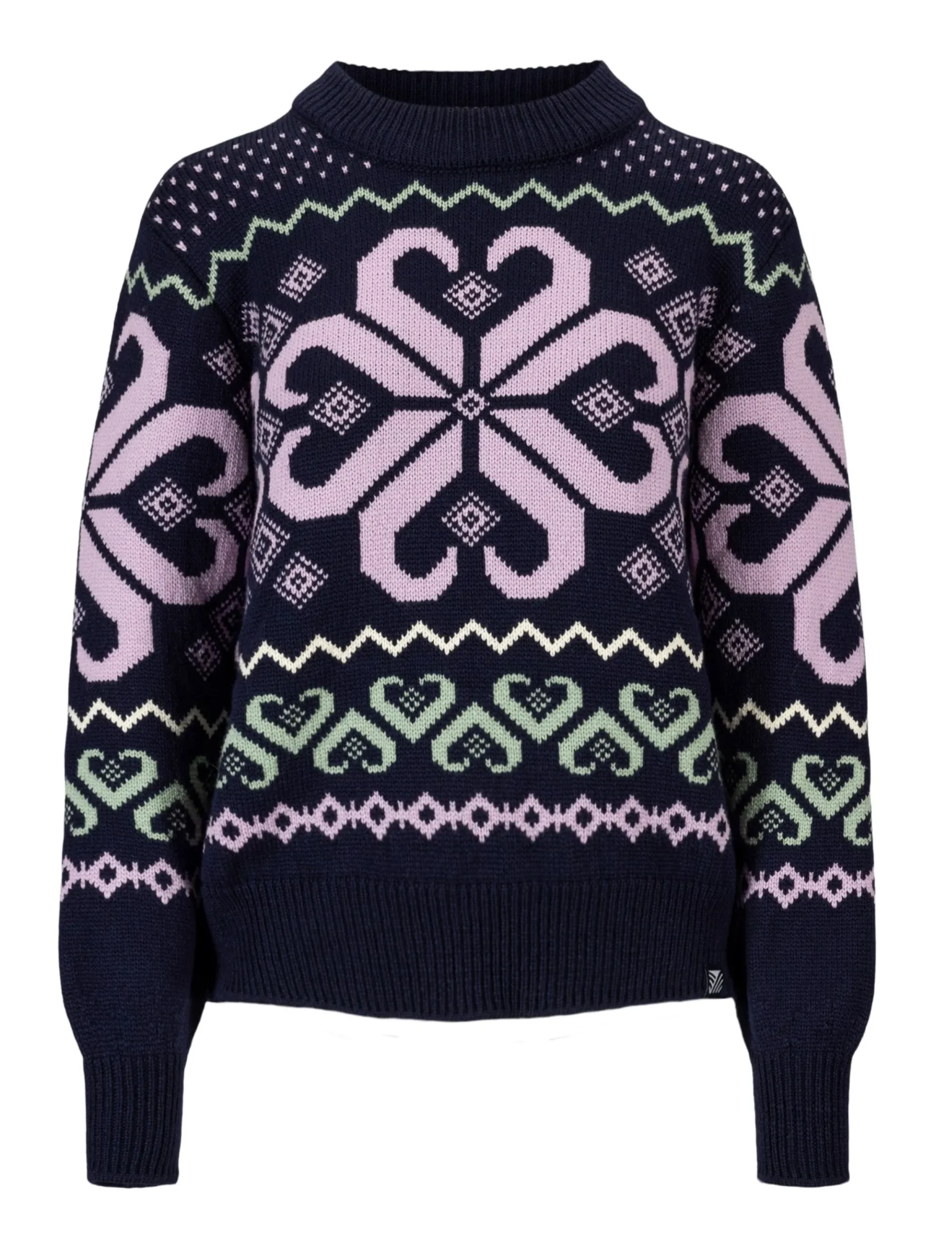 En Sporty Ullgenser Med Bred, Rund Hals. Genseren Er Strikket I Myk Merinoull, Med Ribbestrikk I Hals, Pa Ermer, Og I Genserens Nederkant. Falkeberg Kan Brukes Bade Som En Skigenser Og Som En Avslappet Fritidsgenser. Det 4-Fargede Monsteret Er Hentet Fra Var Offisielle Ol-Genser Fra 1984.